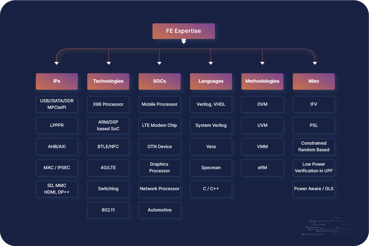 Interestingly, the success of an advanced IC design greatly relies on the ease with which it traverses the front-end designs and the related verifications. Much happily, the highly accomplished team of proficient engineers at IdeateInfosystems specializes in delivering multiple projects in front-end RTL Designs and SoC integrations of multi-million gates IPs, FPGA & system architecture design, and ASIC & IP prototyping with FPGA. The team possesses hands-on experience across Automotive, Graphics, Server, Modem, 5G domains.